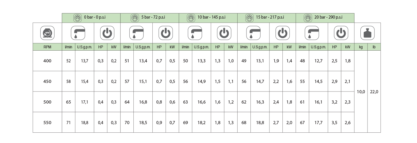 Configuration: 3 diaphragms in NBR and Desmopan® (Viton available on request).
