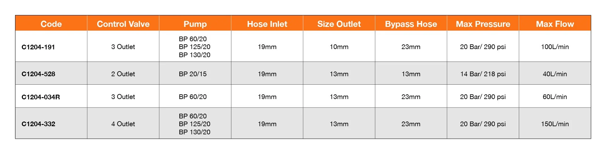CONTROL VALVES 3 OUTLET ON/OFF CONTROL VALVE 4 OUTLET CONTROL VALVE 2 OUTLET ON/OFF CONTROL VALVE 3 OUTLET CONTROL VALVE CONTROL VALVE COMPARISON CHART